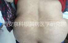 治疗一个疗程后,背部皮损变薄,颜色减退,明显好转