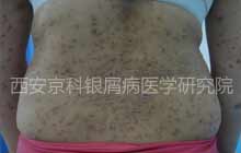 病史:患者患病7余年,伴有皮损鳞屑,中间有3年病情好转。曾口服克银丸,外用自制药水,疗效不佳,四处寻医,都不见效果,后来病情也逐渐加重,今来我院治疗。