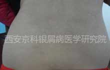 治疗二个疗程后,皮损鳞屑消失,皮肤变光滑