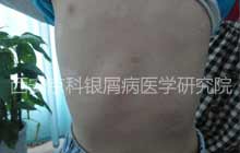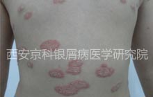 病史:患者全身出现皮损伴有鳞屑,发烧诱发。曾在当地治疗,口服治疗银屑病的药,因发烧输了消炎药,疗效不明显,今来我院治疗。