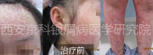 病 史:患者12年前无诱因全身散在枚米粒大小红斑后加重发展成大片红斑,瘙痒明显,曾在当地多家医院使用口服药及外用皮质类固醇激素药,治疗后病情反复加重来我院就治。