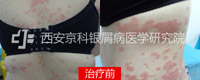 闰某到医院的时候,我院银屑病医生接待了这名患者。在对她的基本生活习惯有所了解之后,建议她做了相关方面的病因检测,最终确诊为微量元素缺失而引起的银屑病,这主要跟她的饮食规律、生活节奏有密切的联系,在由于长期加班,饮食无规律,精神压力过大,最终导致银屑病的发生,后期治疗不正确,导致病情加重。在了解病因之后,医生建议她采用“3D自体免疫疗法 ”进行系统治疗,另外加以药浴辅助治疗。在经过一个多疗程的治疗之后,全身红斑区域已经逐渐缩小,皮屑也少了不少。经过三个疗程的治疗,皮损和红斑已不见踪影。