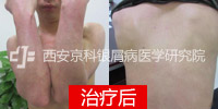 虽然深居简出,但彪哥仍然心念“江湖”,从没放弃治疗,他的足迹踏遍了当地的大小医院。在一家较有名气的医院接受了注射治疗后,彪哥的病情似乎好转了,曾一度恢复了正常,但是好景不长,一年后皮损严重复发,仅仅在十多天后就溃烂流脓。以前的朋友在这时赶来,让他说什么也要去郑州市银屑病研究所看看,彪哥接受了建议来到了我院。》》》如何来院治疗,点击在线咨询