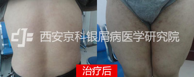 治疗半个月后,王某发现自己身上的皮屑消失了,患处也不在痒了。此时主诊医师根据他的病情进一步调整了治疗方案。一个疗程结束了,王某惊喜的发现自己身上原来的皮损一全部消失,只在较严重的地方留下了一些沉着斑。为了巩固治疗的效果,主诊医师给他追加了半个月的治疗。当医生告诉他已康复可以出院时,王某喜极而泣。