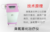 臭氧是世界公认的最强的灭菌剂,具有广谱、高效、快速灭菌消炎的特点。臭氧雾化治疗仪采用世界首创的低温等离子臭氧与超声波能量转换高科技专利技术,把臭氧等离子体、极小的水分子、负离子融合成雾状微小分子颗粒,使其溶解性和渗透性大大增强,并达到灭菌效果最佳的浓度、湿度和温度,以“臭氧雾化熏蒸”的方式,瞬间全面覆盖病患部位,彻底消炎灭菌,同时避免了口服药物和注射等可能存在的毒副作用和抗药性,这是目前世界上最先进的医用臭氧消毒灭菌技术,是全球最新的绿色、快速疗法。