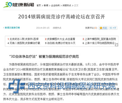 由中华中医药学会主办,世界中西医结合学会、健康中国·爱心联盟、美国华盛顿大学医学院皮肤中心联合协办的“2014银屑病规范诊疗及健康教育高峰论坛暨全国银屑病‘爱心2+1’公益康复援助平台启动仪式”在国家卫计委全面启动,届时,郑州市银屑病银屑斌医院以其权威的专业性成为我国中原地区唯一受邀参加会议的医院。
