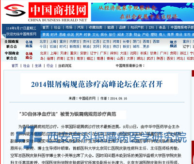 9月13日,2014年2014年银屑病规范诊疗及健康教育高峰论坛在中国 北京卫计委会议中心顺利召开。本次活动由中华中医药学会主办,世界中西医结合学会、健康中国·爱心联盟、美国华盛顿大学医学院皮肤中心联合协办,主题为“银屑病临床诊疗规范、标准化实施,新技术推广应用”。来自世界各国的数百位医疗医生、教授、学者、银屑病诊疗一线医护人员齐聚,共同探讨、分享国际银屑病诊疗技术新进展。